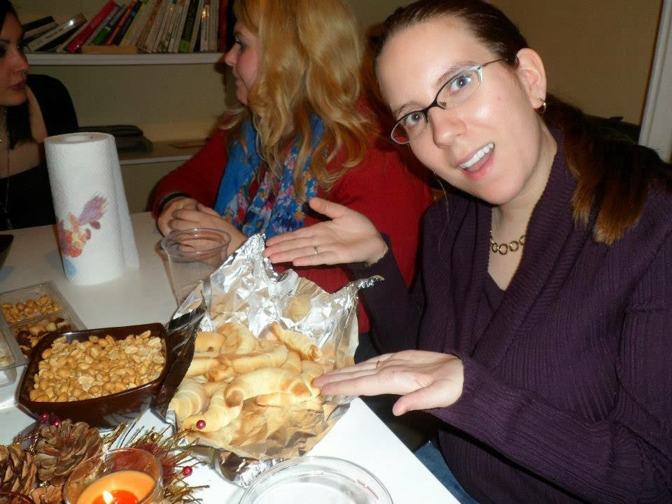 We had the pot luck over at Rachel's new place. She got so lucky and found a great house right in the city center (just a few blocks from where I lived) and she gets to live with French roommates. Totally jealous. She was nice enough to bake the Turkey and she also made these awesome roasted carrots with honey and orange zest or something. So Yummy.